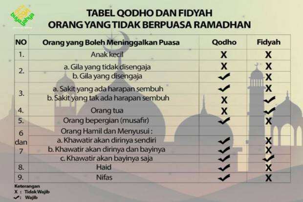 Tetapi ada pula yang diperbolehkan tidak menjalankan kewajiban ini. Jika ia melibatkan hukum mengenai ibadah puasa fidyah dikenakan kerana meninggalkan puasa wajib atas sebab-sebab tertentu atau pun sengaja melewatkan puasa ganti qada. Apa lagi mari kita ingat kembali sekiranya kita telah berjaya ganti puasa wajib atau tidak sebelum puasa kali ini.